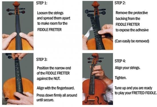 バイオリンの指板に貼るだけでギターのようなフレット指板ができます。